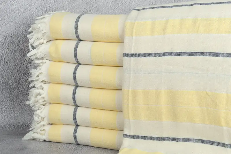 Sofadecke Marineblau-Gelb gestreift, Boho-Überwurf, 79 x 99 Zoll