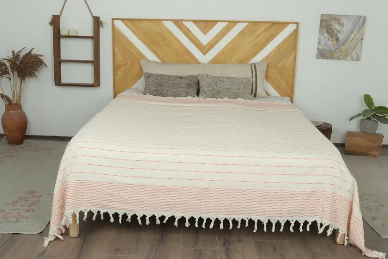 Orange gestreifte handgewebte türkische Decke, 97 x 91 Zoll
