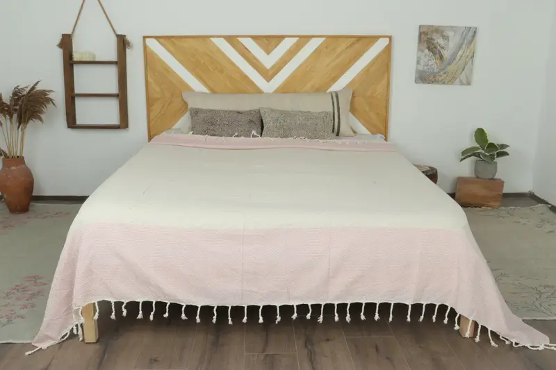 Türkische Tagesdecke, rosa Überwurf aus Leinen, 95 x 95 Zoll