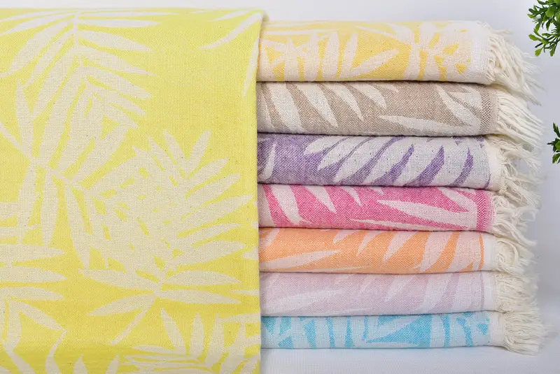 Personalisierbares Strandtuch aus türkischer Baumwolle mit Blumenmuster, Beige, 36 x 71 Zoll