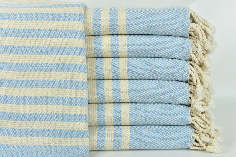Strandtuch aus türkischer Baumwolle, Babyblau gestreift, 40 x 67 Zoll