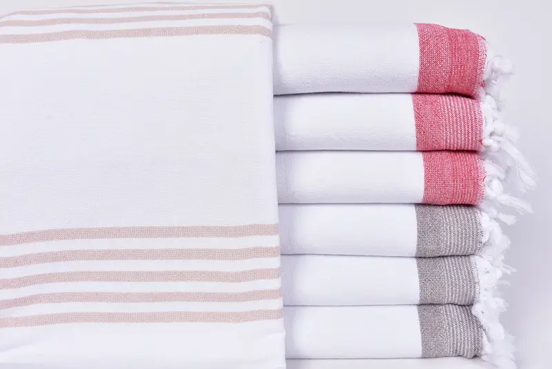 Strandtuch aus türkischer Baumwolle, beige gestreift, 91,4 x 170,8 cm