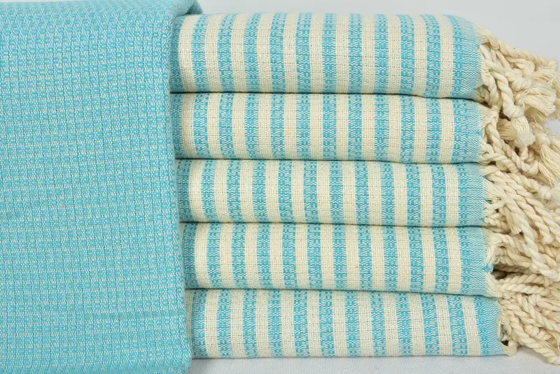 Türkisches Handtuch aus türkisfarbener Baumwolle, Strandtuch, 40 x 70, Blau, Weiß