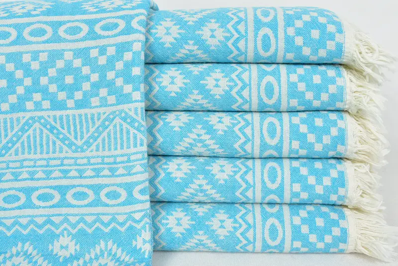 Pestemal-Handtuch, türkisches Badetuch aus Bio-Baumwolle, türkisfarbenes Aztekenmuster, 36 x 70 cm