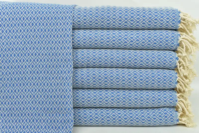 Hochwertige türkische Baumwollfasern sorgen für hervorragende Saugfähigkeit und schnelle Lufttrocknungsfähigkeit. Jedes Handtuch ist handgewebt und weist eine Toleranz von ±2,5 cm bei den Maßen 20 x 40 Zoll (50 x 100 cm) auf. Das Gewicht beträgt ca. 100 Gramm.