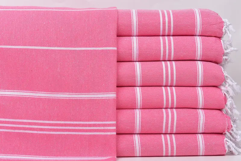 Für diese handgewebten Handtücher wird hochwertige türkische Baumwolle verwendet, die eine hohe Wasseraufnahmefähigkeit und schnelle Trocknungszeiten gewährleistet. Diese Handtücher messen 24 x 40 Zoll oder 60 x 100 cm und wiegen etwa 100 Gramm. Durch den Handwebprozess ergeben sich mögliche Maßabweichungen von ±1-2,5 cm.