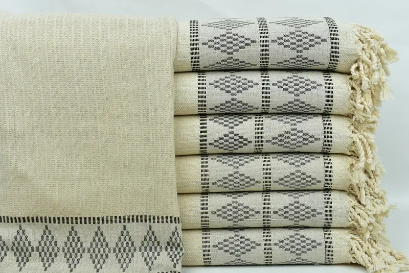 Türkische Handtücher zeichnen sich durch die Verwendung hochwertiger türkischer Baumwolle aus, die für ihre Saugfähigkeit und schnell trocknenden Eigenschaften bekannt ist. Das Ergebnis sind leichte Strandtücher, die sich ideal für mehrere Verwendungszwecke eignen, vom Spa-Bereich bis hin zu Reiseutensilien. Um die Haltbarkeit dieser handgewebten Handtücher zu gewährleisten, sind geringfügige Größenabweichungen innerhalb einer Toleranz von 1 bis 2,5 Zentimetern möglich.