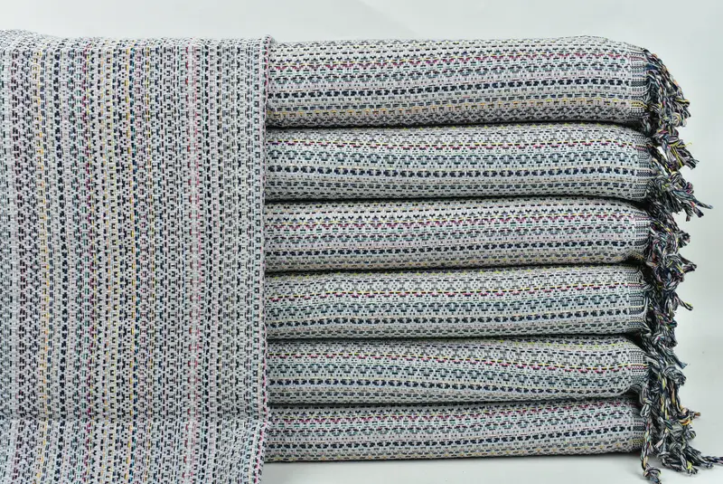 Türkische Baumwolle, die sich durch ihre außergewöhnliche Saugfähigkeit und weiche Textur auszeichnet, ist das Hauptmaterial für diese handgewebten Geschirrtücher. Das Material, das aus türkischer Baumwolle gewonnen wird, die für ihre Wasseraufnahme bekannt ist, führt zu Handtüchern, die schnell und natürlich trocknen. Jedes Handtuch misst 18 x 38 Zoll (45 x 95 cm) mit einer Toleranz von ±1–2,5 cm, um einen erstklassigen Handwebprozess zu gewährleisten. Mit einem Gewicht von etwa 120 Gramm sind diese Handtücher vorgeschrumpft, sodass keine zusä...
