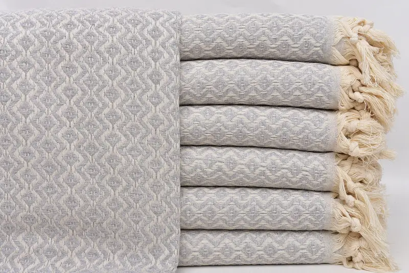 Türkische Baumwolle ist bekannt für ihre hohe Saugfähigkeit und ihre schnell trocknenden Eigenschaften, die eine optimale Verwendung in verschiedenen Umgebungen gewährleisten. Es zeichnet sich durch seine traditionelle Handweberei aus und toleriert Abweichungen von bis zu 2,5 cm in den Abmessungen, typischerweise misst es 40 x 71 Zoll (100 x 180 cm). Die Handtücher wiegen etwa 400 Gramm und sind daher leicht und dennoch sehr saugfähig.