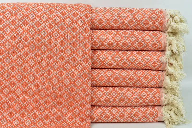 Türkische Handtücher werden auf traditionellen Handwebstühlen aus hochwertiger türkischer Baumwolle hergestellt und gewährleisten eine hohe Saugfähigkeit und schnelle Trocknungseigenschaften. Diese Handtücher zeichnen sich durch ihre Abmessungen von 100 x 180 cm (40 x 71 Zoll) und ein Gewicht von etwa 450 Gramm aus und weisen eine minimale Handwebtoleranz von bis zu 2,5 cm auf. Da diese Handtücher vorgeschrumpft sind, bieten sie individuelle Optionen für personalisierte Stickereien und sprechen einen breiten Markt an, darunter Hochzeiten und Sp...
