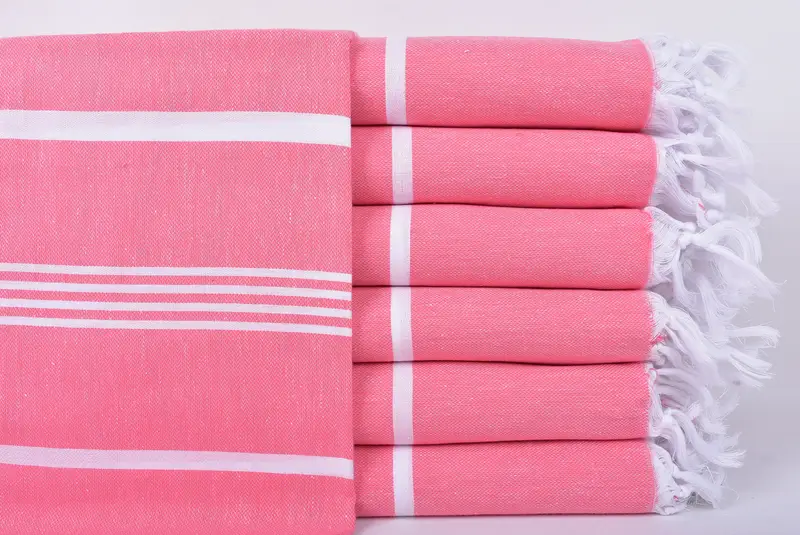Türkische Handtücher zeichnen sich durch die Verwendung hochwertiger türkischer Baumwolle aus, die eine außergewöhnliche Wasseraufnahmefähigkeit und schnelle Trocknungszeiten gewährleistet. Das Ergebnis sind Handtücher, die auf natürliche Weise trocknen, ohne dass ein Trockner erforderlich ist. Diese Handtücher behalten ihre Weichheit und Haltbarkeit über mehrere Verwendungszwecke hinweg. Das Material verfügt außerdem über eine Faserzusammensetzung, die es ermöglicht, die Handtücher mit Abmessungen von 40 x 71 Zoll oder 100 x 180 cm vorgeschrum...