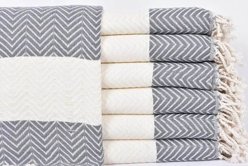 Hochwertige türkische Baumwolle sorgt für außergewöhnliche Saugfähigkeit und sorgt für schnelle Trocknungszeiten. Diese Handtücher zeichnen sich durch Abmessungen von 40 x 71 Zoll oder 100 x 180 cm mit einer Toleranz von 1–2,5 cm aus und wiegen etwa 414 Gramm. Diese sorgfältig handgewebten Handtücher können mit Stickereien individuell gestaltet werden.