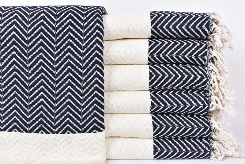 Hochwertige türkische Baumwollfasern sorgen für hohe Saugfähigkeit und schnelles Trocknen. Das Ergebnis ist ein leichtes und dennoch strapazierfähiges Handtuch, das 100 x 180 cm große türkische Handtuch wiegt etwa 414 Gramm. Jedes Produkt ist handgewebt mit einer Toleranz von 1–2,5 cm und bietet eine einzigartige, handwerkliche Note.