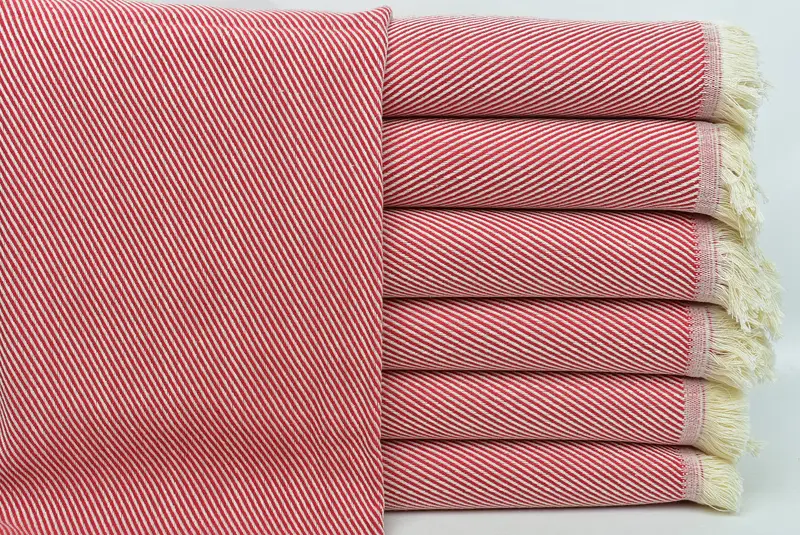 Türkische Pestemal-Handtücher sind bekannt für ihre hervorragende Qualität, die sich durch ihre Zusammensetzung aus türkischer Baumwolle auszeichnet. Diese Handtücher gewährleisten eine außergewöhnliche Saugfähigkeit und werden mit traditionellen Techniken handgewebt. Daraus ergeben sich Abweichungen von bis zu 2,5 Zentimetern Größe, diese Handtücher messen 90 x 180 cm (36 x 71 Zoll) und wiegen etwa 350 Gramm.