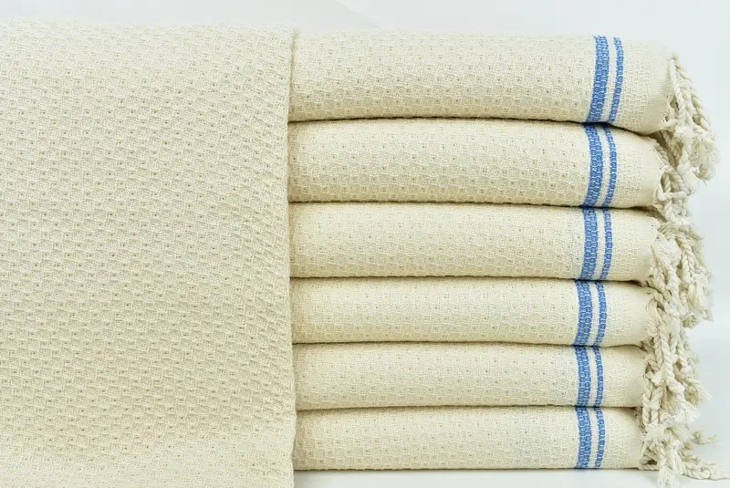Hochwertige türkische Baumwolle, die für ihre hervorragende Saugfähigkeit bekannt ist, zeichnet diese Handtücher aus. Um eine schnelle Trocknung zu gewährleisten, werden sie auf traditionellen Handwebstühlen gefertigt, wobei eine Maßtoleranz von 1–2,5 cm möglich ist. Ihr geringes Gewicht von etwa 440 Gramm und die Abmessungen von 90 x 170 cm (36 x 67 Zoll) machen sie zu vielseitigen Einsatzmöglichkeiten.