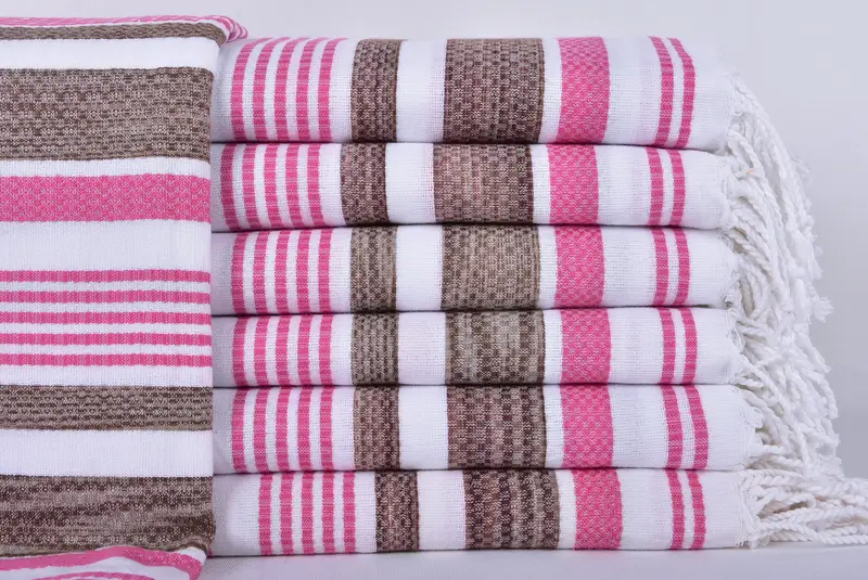 Für die Herstellung der türkischen Badetücher wird hochwertige türkische Baumwolle verwendet, die sich durch außergewöhnliche Saugfähigkeit und schnell trocknende Eigenschaften auszeichnet und eine unübertroffene Weichheit gewährleistet. Mit einer Größe von 100 x 180 cm (40 x 71 Zoll) und einer zulässigen Toleranz von ± 1–2,5 cm wiegen diese Handtücher etwa 380 Gramm, was zu leichten und dennoch langlebigen Produkten führt. Zu den Individualisierungsoptionen gehören persönliche Stickereien. Einlaufvorbehandelte Handtücher werden weltweit versan...