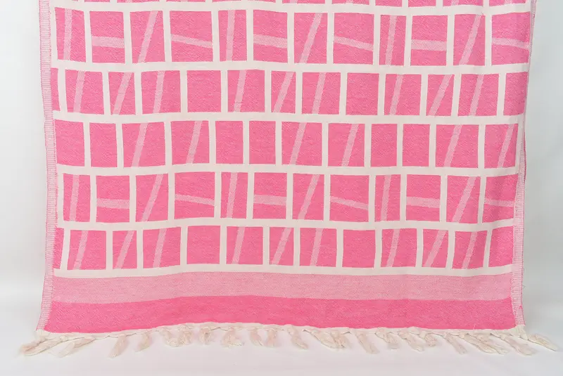 Hochwertige türkische Baumwolle, die sich durch hervorragende Saugfähigkeit und schnelle Trocknungseigenschaften auszeichnet, wird sorgfältig auf traditionellen Handwebstühlen gewebt. Dieses Material gewährleistet Haltbarkeit und Weichheit und führt zu einem vielseitigen Produkt, das für mehrere Verwendungszwecke geeignet ist. Bei einem Gewicht von ca. 360 Gramm und einer Größe von 85 x 175 cm (34 x 69 Zoll) kann die Größe der Handtücher aufgrund von Handwebtoleranzen um 1–2,5 cm variieren.
