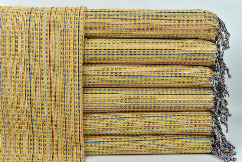 Türkische Handtücher bestehen aus hochwertigen türkischen Baumwollfasern, die sich durch außergewöhnliche Saugfähigkeit und schnelle Trocknungsfähigkeit auszeichnen. Diese Handtücher wiegen etwa 120 Gramm und messen 18 x 38 Zoll oder 45 x 95 cm mit einer Toleranz von 1–2,5 cm. Sie werden auf traditionellen türkischen Webstühlen handgewebt und bieten eine einzigartige Textur, die sich von normalen Handtüchern unterscheidet.