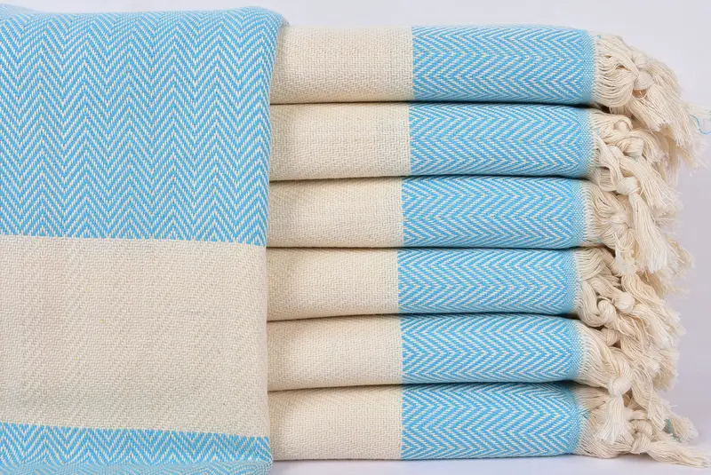 Türkische Handtücher werden aus türkischer Baumwolle hergestellt und gewährleisten eine außergewöhnliche Saugfähigkeit und schnelles Trocknen, was sie zu einer vielseitigen Alternative zu normalen Handtüchern macht. Die Handtücher haben die Maße 40 x 71 Zoll bzw. 100 x 180 Zentimeter, mit einer leichten Toleranz von 1 bis 2,5 Zentimeter. Sie wiegen etwa 430 Gramm und werden auf traditionellen Webstühlen sorgfältig von Hand gewebt.