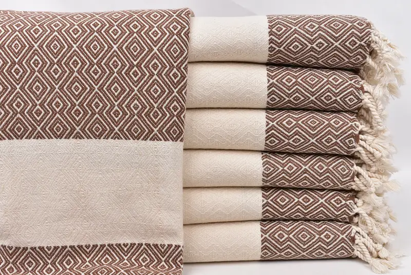 Hochwertige türkische Baumwolle sorgt für hervorragende Saugfähigkeit und schnelle Trocknungsfähigkeit und unterscheidet diese Handtücher von herkömmlichen Sorten. Diese Handtücher zeichnen sich durch die Maße 38 x 67 Zoll oder 95 x 170 cm mit einer Toleranz von ±1–2,5 cm aus und wiegen etwa 350 Gramm. Sie werden mit traditionellen Techniken handgewebt und bieten Individualisierungsmöglichkeiten, einschließlich der Stickerei von Namen oder Daten.