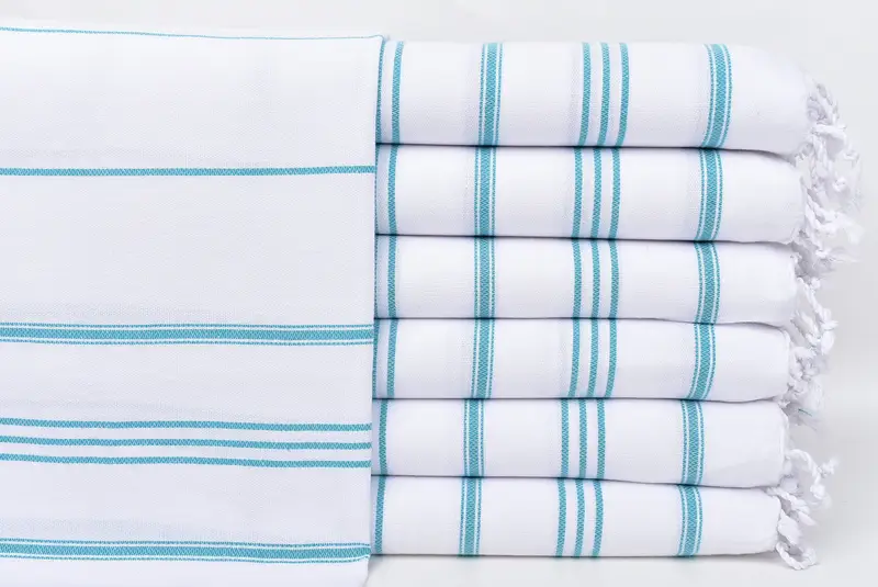 Hochwertige türkische Baumwollfasern, die für ihre außergewöhnliche Saugfähigkeit bekannt sind, zeichnen die türkischen Handtücher aus. Diese Eigenschaften sorgen für eine schnelle Trocknung und einen minimalen Ressourcenverbrauch, was zu umweltfreundlichen Textilien führt. Die Handtücher haben die Maße 24x36 Zoll bzw. 60x90 cm mit einer Toleranz von ±1-2,5 cm und wiegen etwa 100 Gramm.