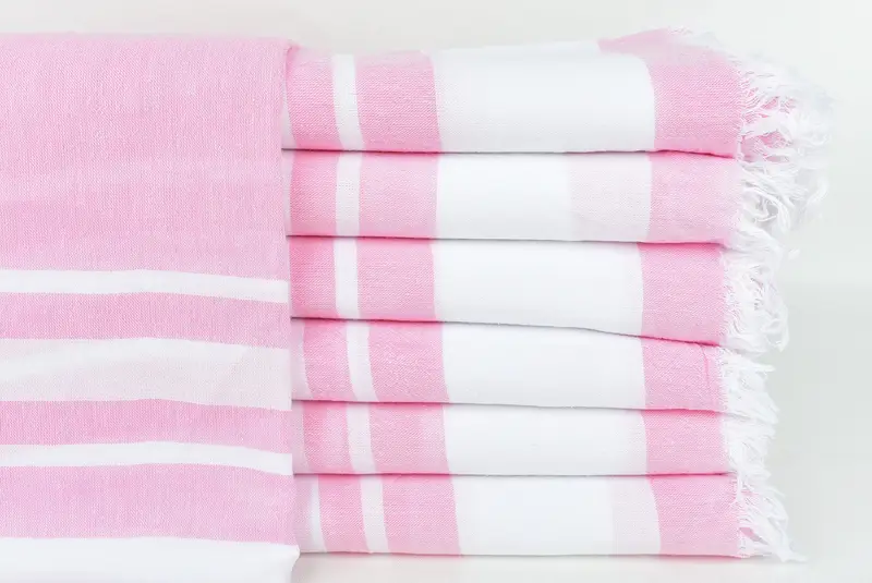 Hochwertige türkische Baumwolle sorgt für hervorragende Saugfähigkeit und schnelles Trocknen, was zu einem langlebigen und vielseitigen Textilprodukt führt. Mit einer Größe von 90 x 170 cm (36 x 67 Zoll) und einer Toleranz von bis zu 5 cm wiegen diese Handtücher etwa 180 Gramm. Handgewebt mit traditionellen Techniken, die Abmessungen können leicht variieren.