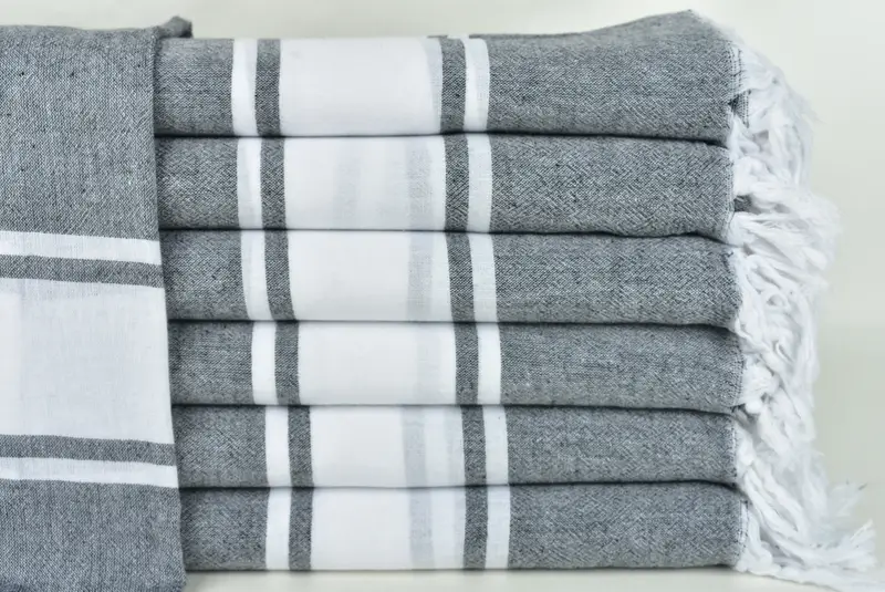 Hochwertige türkische Baumwolle, die eine hervorragende Saugfähigkeit und schnelles Trocknen gewährleistet, zeichnet diese handgewebten Handtücher aus. Jedes Handtuch hat eine Größe von 40 x 71 Zoll oder 100 x 180 cm mit einer zulässigen Toleranz von bis zu 2,5 cm und wiegt etwa 290 Gramm. Diese Handtücher zeichnen sich durch ihre umweltfreundlichen Eigenschaften aus und erfordern bei der Herstellung nur minimale Ressourcen und Energie.