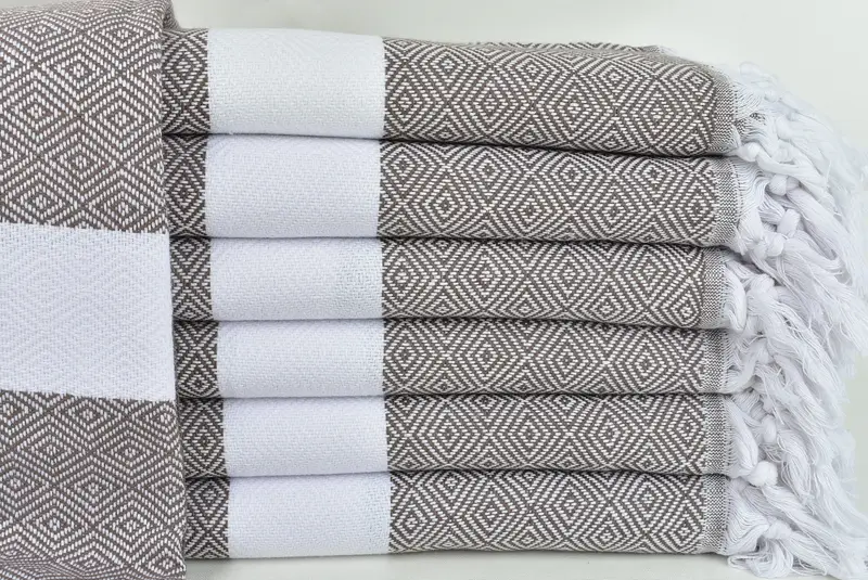 Die Faserzusammensetzung aus türkischer Baumwolle sorgt für eine hervorragende Saugfähigkeit und damit für schnelle Trocknungseigenschaften. Jedes Handtuch zeichnet sich durch eine handgewebte Konstruktion aus und weist eine Maßabweichung von bis zu 2,5 Zentimetern auf, wobei es genau 40 x 71 Zoll oder 100 x 180 Zentimeter misst. Mit einem Gewicht von ca. 360 Gramm sind diese Handtücher leicht und dennoch robust.