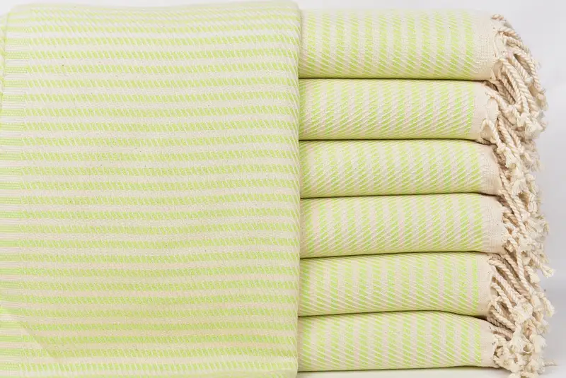 Türkische Pestemal-Handtücher zeichnen sich durch die Verwendung hochwertiger türkischer Baumwolle aus, die eine hervorragende Saugfähigkeit und schnelle Trocknungszeiten gewährleistet. Diese Handtücher wiegen etwa 340 Gramm und messen 40 x 71 Zoll oder 100 x 180 cm mit einer Toleranz von 1 bis 2,5 cm. Sie sind handgewebt, was zu einer weichen Textur führt, die sich von normalen Handtüchern unterscheidet.
