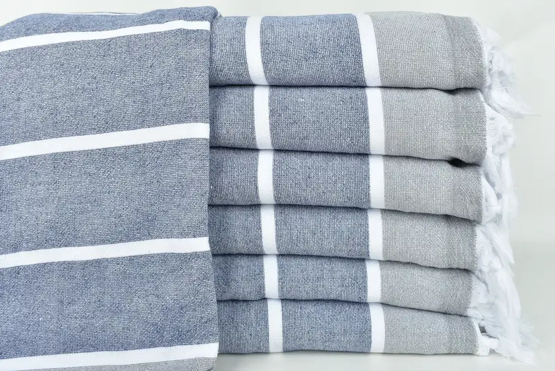 Türkische Handtücher bestehen aus hochwertiger türkischer Baumwolle und gewährleisten im Vergleich zu normalen Handtüchern eine höhere Saugfähigkeit und schnelles Trocknen. Diese Handtücher sind ein leichtes und dennoch hochfunktionelles Produkt. Sie wiegen etwa 400 Gramm und haben eine Größe von 40 x 67 Zoll, was 100 x 170 Zentimetern mit einer Toleranz von 1 bis 2,5 cm entspricht. Durch diesen präzisen Handwebprozess entsteht ein Produkt, das sowohl in der Qualität als auch im Aussehen gleichbleibend ist.