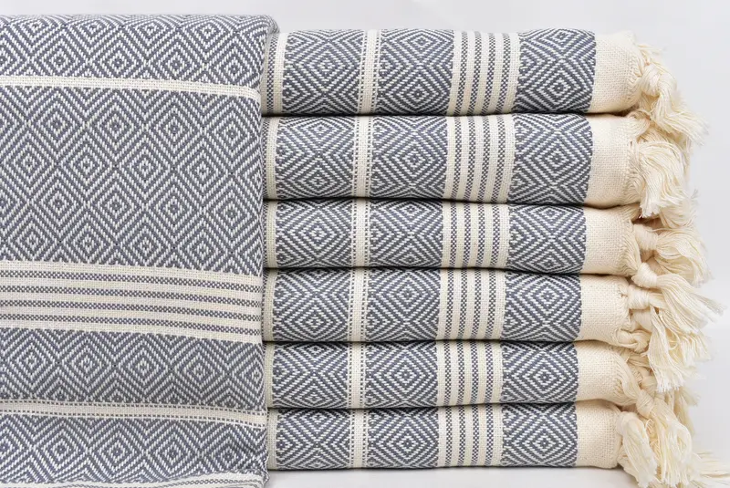Diese Handtücher bestehen aus hochwertiger türkischer Baumwolle und zeichnen sich durch außergewöhnliche Saugfähigkeit und schnelle Trocknungszeiten aus, was eine umweltfreundliche Lösung gewährleistet. Die Handtücher stammen aus traditionellen Handwebstühlen und messen 38 x 69 Zoll oder 95 x 175 cm mit einer leichten Toleranz von 1–2,5 cm. Jedes Stück wiegt etwa 440 Gramm und ist vorgeschrumpft, sodass ein gebrauchsfertiges Produkt entsteht.
