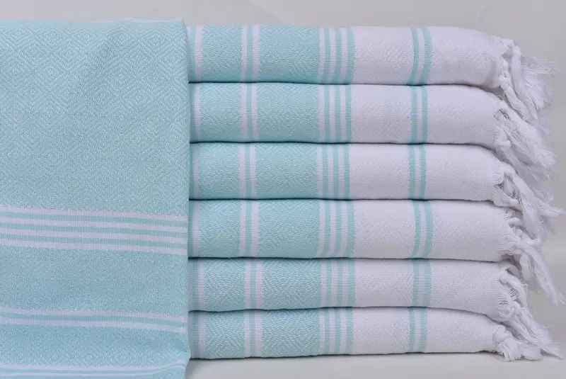 Türkische Handtücher zeichnen sich durch ihre Herstellung aus türkischer Baumwolle aus, einem Material, das für seine hervorragende Saugfähigkeit und schnell trocknenden Eigenschaften bekannt ist. Diese handgewebten Handtücher bestehen aus hochwertiger türkischer Baumwolle, wiegen etwa 110 Gramm und weisen Abmessungen von 18 x 40 Zoll oder 45 x 100 Zentimetern mit einer Toleranz von bis zu 1 bis 2,5 Zentimetern auf.