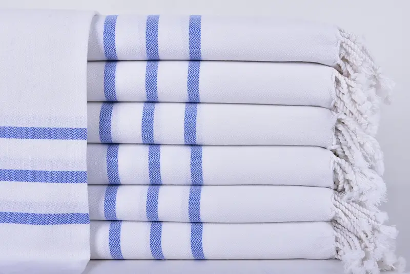 Handtücher aus türkischer Baumwolle sind für ihre hervorragende Saugfähigkeit und schnelle Trocknungsfähigkeit bekannt. Das Ergebnis ist ein leichtes Handtuch mit einem Gewicht von etwa 410 Gramm. Sie zeichnen sich durch außergewöhnliche Weichheit und Haltbarkeit aus und gewährleisten eine längere Nutzung. Die mit traditionellen Handwebtechniken gefertigten Abmessungen betragen 40 x 71 Zoll oder 100 x 180 Zentimeter mit einer Toleranz von 1 bis 2,5 cm.