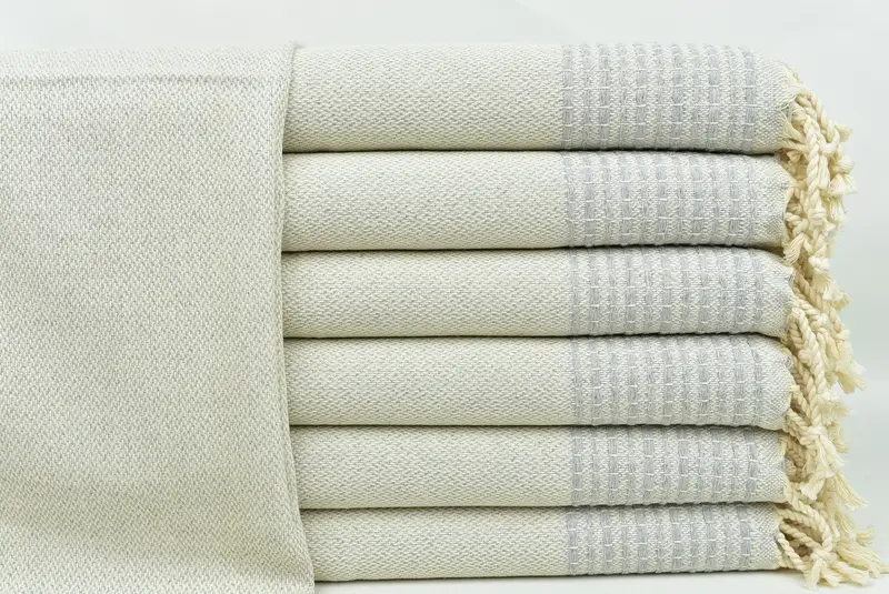 Hochwertige türkische Baumwolle sorgt für hervorragende Saugfähigkeit und schnell trocknende Eigenschaften. Dieses Material zeichnet sich durch die spezifischen Abmessungen von 20 x 40 Zoll oder 50 x 100 cm aus und weist eine Toleranz von 1 bis 2,5 cm auf. Jedes handgewebte Handtuch wiegt etwa 120 Gramm und gewährleistet Haltbarkeit und Komfort.
