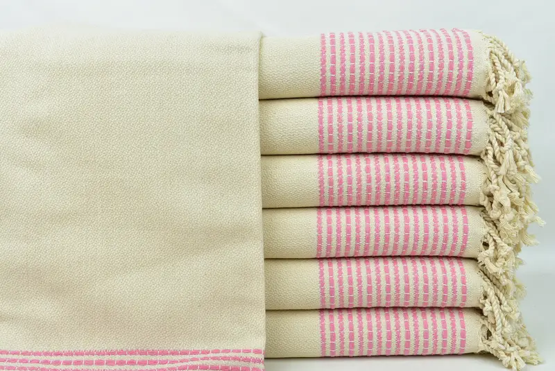 Hochwertige türkische Baumwolle zeichnet die Handtücher aus und sorgt dafür, dass sie sehr saugfähig sind und schnell trocknen. Die Handtücher haben eine Größe von 90 x 175 cm (36 x 69 Zoll) mit einer Toleranz von bis zu 5 cm und wiegen etwa 460 Gramm. Die handgewebte Konstruktion ermöglicht leichte Maßabweichungen.