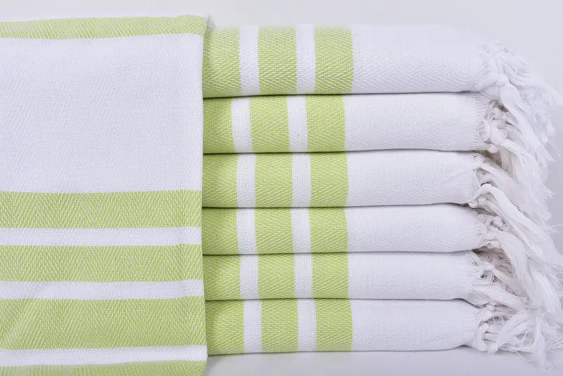 Die aus hochwertiger türkischer Baumwolle gefertigten Handtücher weisen eine hervorragende Saugfähigkeit auf und trocknen im Vergleich zu herkömmlichen Handtüchern schnell. Diese Handtücher zeichnen sich durch Abmessungen von 40 x 71 Zoll aus, was 100 x 180 cm mit einer Toleranz von 1–2,5 cm entspricht, und ein Gewicht von etwa 380 Gramm. Sie werden sorgfältig handgewebt. Zu den Individualisierungsoptionen gehört das Aufsticken von Namen oder Daten, ein Vorschrumpfen ist nicht erforderlich.