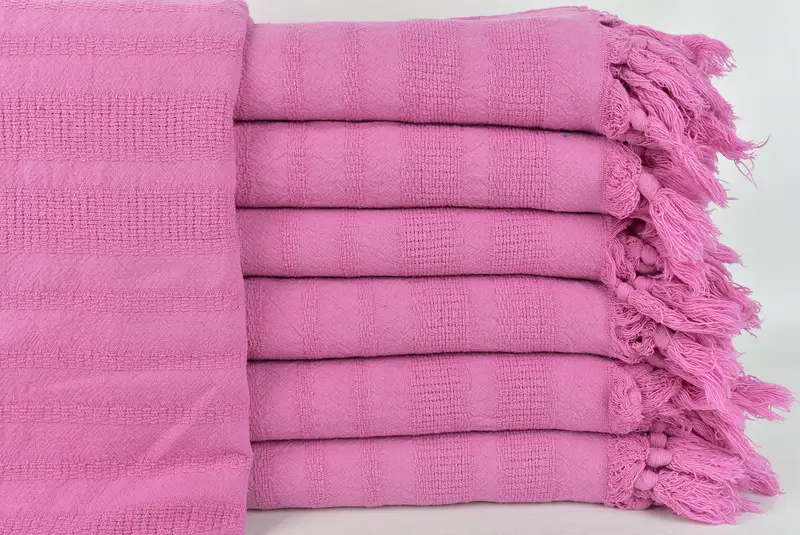 Hochwertige türkische Baumwolle zeichnet diese Handtücher aus und sorgt für schnelles Trocknen und hohe Saugfähigkeit. Mit einer Größe von 90 x 170 cm (36 x 67 Zoll) und einer Toleranz von bis zu 5 cm wiegen die Handtücher etwa 300 Gramm. Diese Handtücher werden sorgfältig auf traditionellen Handwebstühlen handgewebt, was zu Größenabweichungen führen kann.