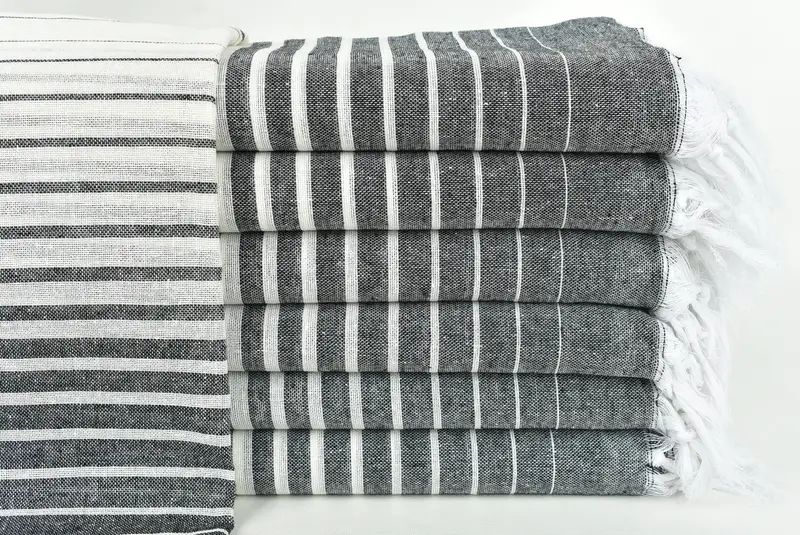 Handgewebte türkische Baumwolle sorgt für hervorragende Saugfähigkeit und schnelle Trocknungszeiten und zeichnet sich durch ihre Weichheit und Vielseitigkeit aus. Mit den Maßen 40 x 69 Zoll (100 x 175 cm) und einer Toleranz von ±1–2,5 cm wiegen diese Handtücher etwa 240 Gramm.