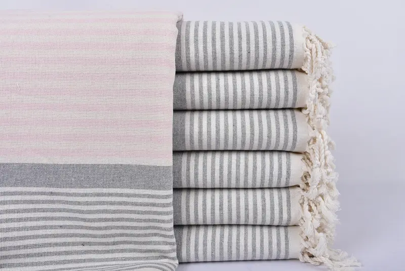 Die türkischen Handtücher zeichnen sich durch präzise Handwerkskunst aus, die durch Handweben auf traditionellen Webstühlen gekennzeichnet ist. Dieses Verfahren ermöglicht leichte Abweichungen innerhalb einer ...