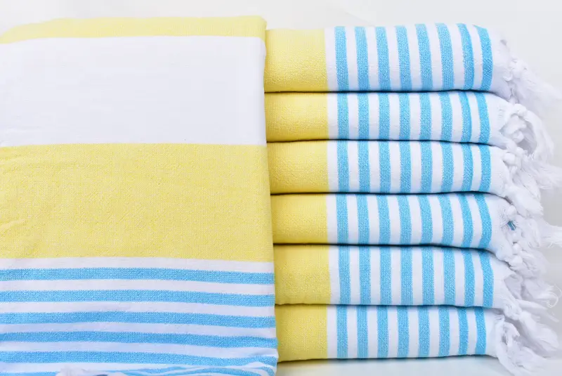 Türkische Handtücher zeichnen sich durch die Verwendung hochwertiger türkischer Baumwolle aus, die eine hervorragende Saugfähigkeit und Weichheit gewährleistet. Das Stoffgewicht beträgt ca. 400 Gramm und die Handtücher messen 36 x 67 Zoll oder 90 x 170 Zentimeter, mit einer zulässigen Abweichung von 1–2,5 cm. Diese Handtücher werden auf traditionellen Webstühlen handgewebt, was zu einem vorgeschrumpften Status führt.