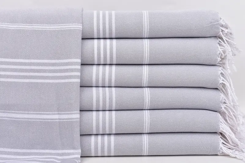 Hochwertige türkische Baumwolle sorgt für hervorragende Saugfähigkeit und weiche Textur und zeichnet sich durch schnell trocknende Eigenschaften aus. Mit einer Größe von 40 x 71 Zoll oder 100 x 180 cm und einer zulässigen Abweichung von bis zu 2,5 cm wiegen diese Handtücher etwa 290 Gramm. Sie werden auf traditionellen Webstühlen von Hand gewebt und erreichen einen vorgeschrumpften Status, sodass kein zusätzliches Schrumpfen erforderlich ist.