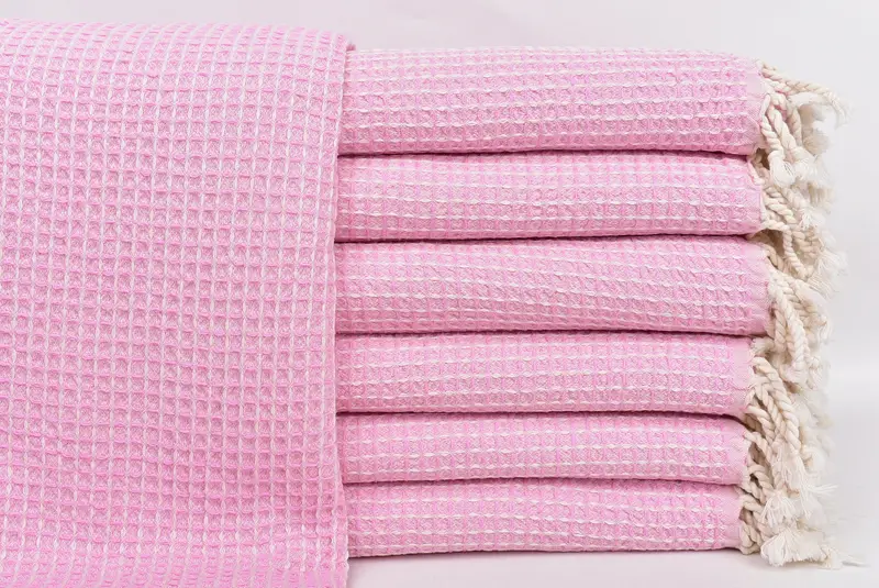 Hochwertige türkische Baumwolle zeichnet sich durch hervorragende Saugfähigkeit und Weichheit aus und zeichnet das Material der Handtücher aus. Die Handtücher haben die Maße 90 x 170 cm (36 x 67 Zoll) mit einer Toleranz von 1–2,5 cm und wiegen etwa 300 Gramm. Diese Handtücher werden auf traditionellen Webstühlen von Hand gewebt und behalten präzise Abmessungen bei.