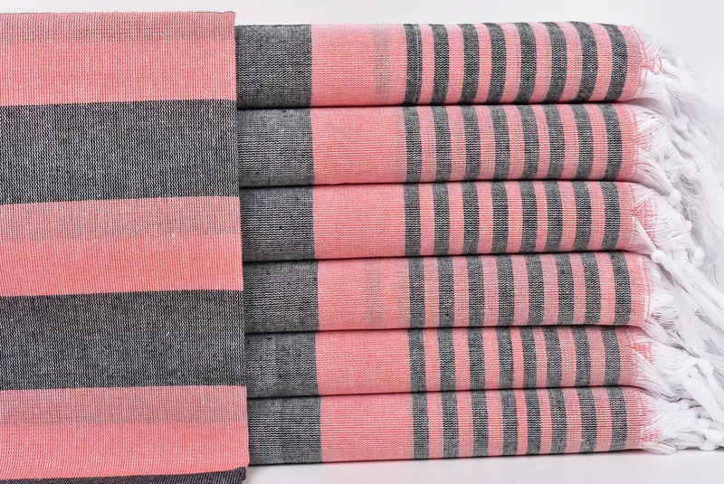Hochwertige türkische Baumwolle zeichnet diese Handtücher aus und sorgt für eine hervorragende Saugfähigkeit und schnelle Trocknungszeiten. Die Handtücher haben eine Größe von 36 x 67 Zoll oder 90 x 170 cm und ein Gewicht von ca. 200 Gramm. Beim Handweben ergeben sich Toleranzen von bis zu 1-2,5 cm.