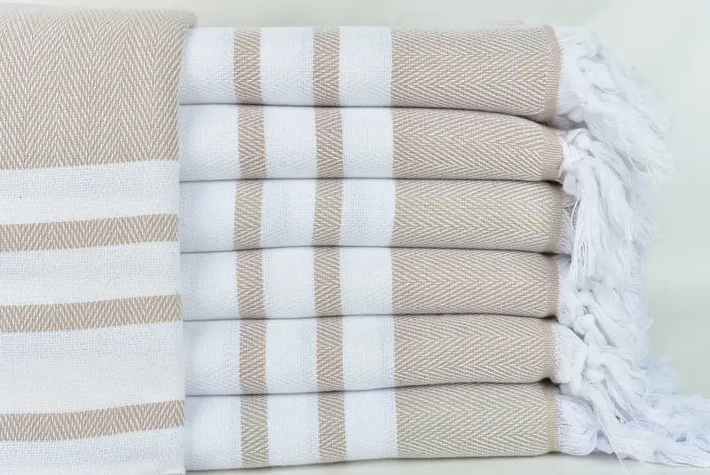 Hochwertige türkische Baumwolle sorgt für hervorragende Saugfähigkeit und schnelles Trocknen. Diese Handtücher zeichnen sich durch Abmessungen von 90 x 170 cm (36 x 67 Zoll) und ein Gewicht von 380 Gramm aus und lassen geringfügige Toleranzen von 1 bis 2,5 cm zu. Sie werden auf traditionellen Webstühlen von Hand gewebt und bieten einen vorgeschrumpften Status, der eine einheitliche Größe gewährleistet. Kunden können für besondere Anlässe personalisierte Stickereien anfordern, begleitet von einer Zufriedenheitsgarantie und einem einfachen Rückga...