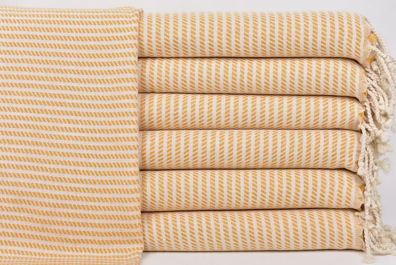 Türkische Handtücher zeichnen sich durch die Verwendung hochwertiger türkischer Baumwolle aus und sorgen für außergewöhnliche Saugfähigkeit und schnelles Trocknen. Das Material ist so konzipiert, dass es schnell von selbst trocknet und dabei nur minimale Ressourcen, Wasser und Energie benötigt. Mit den Maßen 20 x 40 Zoll bzw. 50 x 100 Zentimeter, mit einer leichten Toleranz von 1–2,5 cm, wiegt jedes Handtuch etwa 122 Gramm.