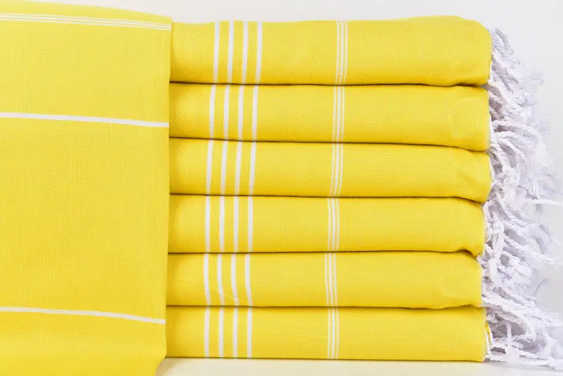 Türkische Handtücher sind bekannt für ihre Zusammensetzung aus hochwertiger türkischer Baumwolle, die eine außergewöhnliche Saugfähigkeit und schnelles Trocknen gewährleistet. Diese Handtücher sind ein leichtes Produkt und zeichnen sich durch ihre Vielseitigkeit aus. Sie dienen vielfältigen Zwecken vom Bad bis zum Strand und sogar als dekorative Überwürfe. Ihre Größenangaben betragen 38 x 73 Zoll oder 95 x 185 cm mit einer geringfügigen Toleranz von ±2,5 cm. Diese Handtücher wiegen etwa 280 Gramm und werden im traditionellen Handwebverfahren he...