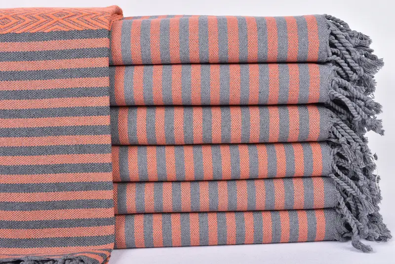 Türkische Handtücher zeichnen sich durch eine hervorragende Saugfähigkeit aus. Sie bestehen aus hochwertiger türkischer Baumwolle und sorgen für schnelle Trocknungszeiten. Mit einer Größe von 40 x 71 Zoll oder 100 x 180 cm und einer zulässigen Toleranz von 1–2,5 cm wiegen diese Handtücher etwa 430 Gramm. Jedes Stück ist sorgfältig handgewebt und sorgfältig verarbeitet.