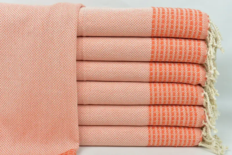 Hochwertige türkische Baumwolle zeichnet diese Handtücher aus und sorgt für eine außergewöhnliche Wasseraufnahmefähigkeit und schnelles Trocknen. Aufgrund des leichten Designs wiegt jedes Handtuch etwa 120 Gramm. Toleranzen beim Handweben können zu Abmessungen im Bereich von 20 x 40 Zoll bis 25 x 45 Zoll (50 x 100 cm bis 63 x 114 cm) führen.