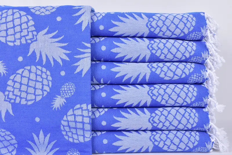 Türkische Baumwolle, die für ihre außergewöhnliche Saugfähigkeit und Weichheit bekannt ist, sorgt dafür, dass diese Handtücher schnell trocknen, ohne dass ein Trockner erforderlich ist. Diese Handtücher zeichnen sich durch ihr geringes Gewicht und ihre schnelle Trocknungszeit aus und werden auf traditionellen türkischen Webstühlen sorgfältig von Hand gewebt, wobei eine Maßtoleranz von 1–2,5 cm möglich ist. Jedes türkische Handtuch hat eine Größe von 100 x 180 cm (40 x 71 Zoll) und wiegt etwa 366 Gramm, wodurch es vielseitig einsetzbar ist.