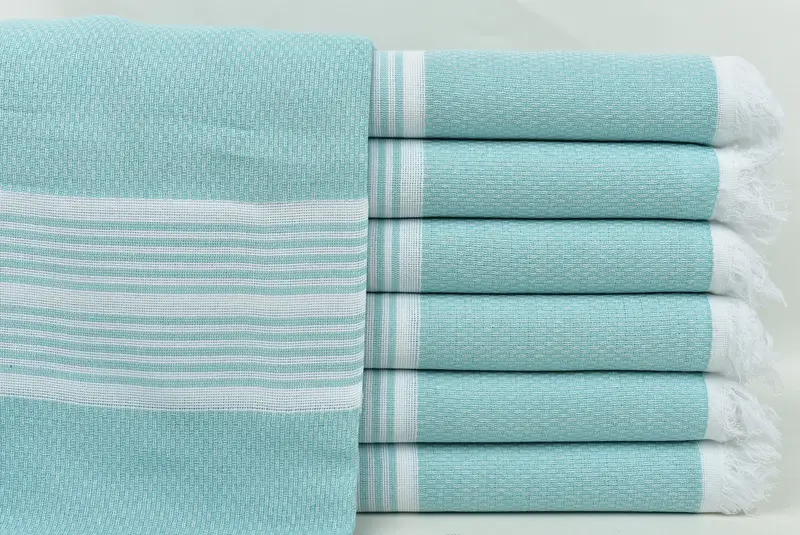 Hochwertige türkische Baumwolle sorgt für die Saugfähigkeit und Weichheit des Handtuchs, sodass es schnell trocknet und sanft zur Haut ist. Bei einem Gewicht von etwa 260 Gramm weisen die Handtücher im Format 100 x 180 cm (40 x 71 Zoll) aufgrund des Handwebens Abweichungen von 1 bis 2,5 cm auf.